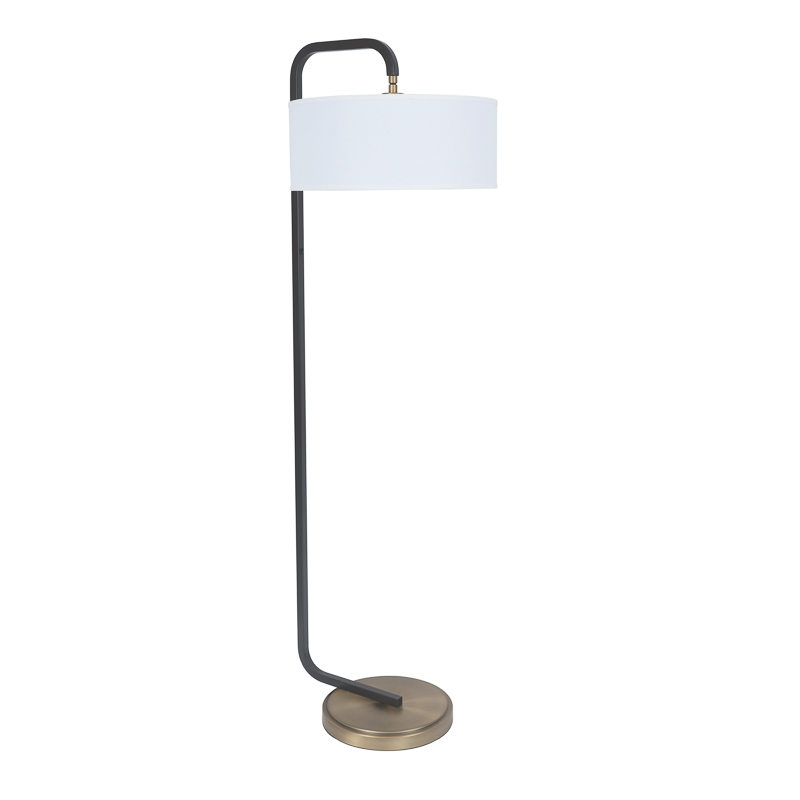 This floor lamp has a burnished brass and dark bronze finish with the metal.