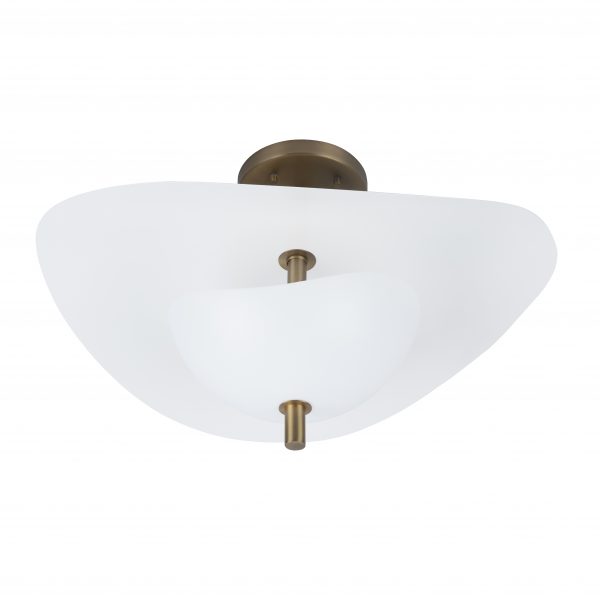 This ceiling fixture has a brushed brass finish and faux ceramic white glaze finish with the metal.